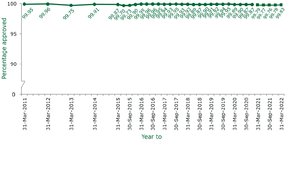 The Forestry Commission is the regulator for the legal felling of trees in England, responsible for assessing applications and for issuing licences. Applications for felling licences increased by 5% since last year, with over 80% of applications now using Felling Licence Online. 3,165 licences have been approved, of which 445 were supporting 10-year woodland management plans.