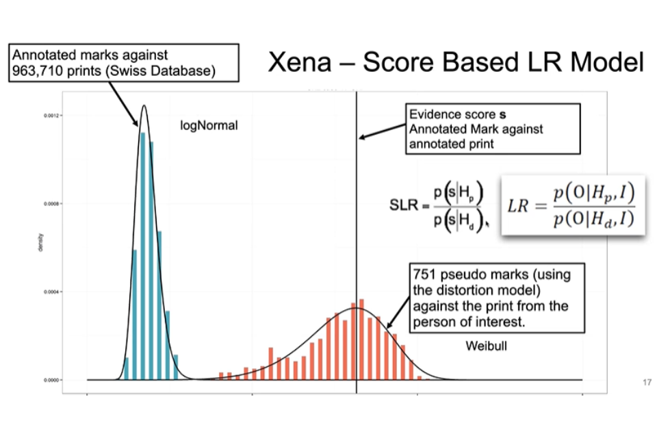 Xena is currently undergoing testing to evaluate these corresponding likelihood ratios for mated pairs and non-mated pairs, including rates of misleading evidence. Additional testing will include reproducibility and repeatability tests across multiple users for the same mark.