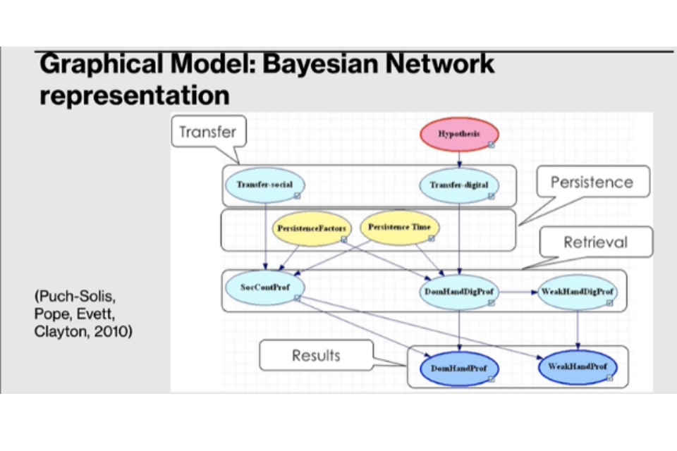 Activity level questions can be represented in a graphical model in the form of a Bayesian Network (Figure2). These can be difficult to make, as you need to determine variables of interest, their states, and an appropriate experiment to determine probabilities. Experiments and expert judgement provide probabilities to populate the Bayes Net.