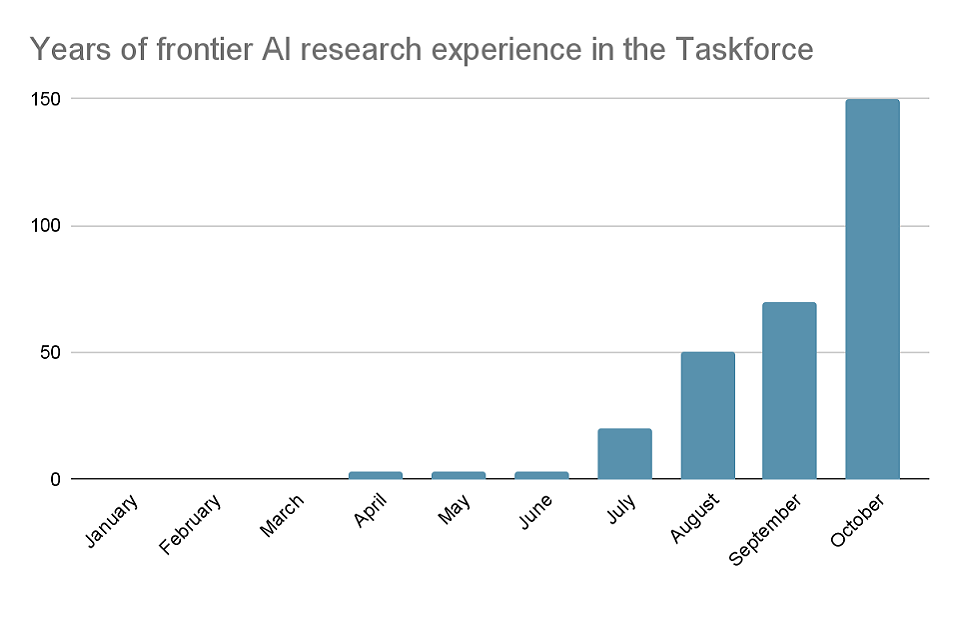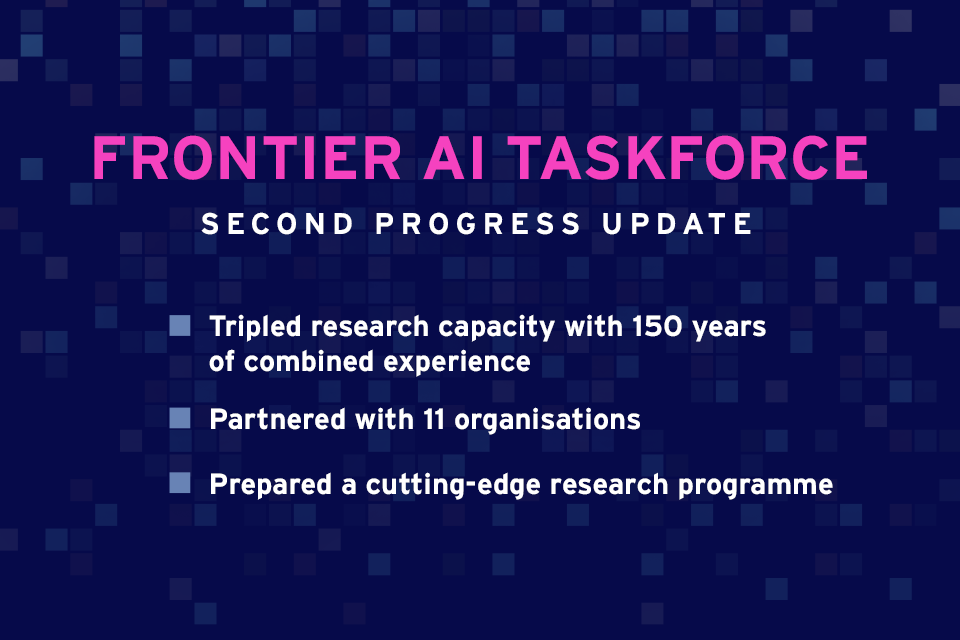 The Taskforce is a start-up inside government, delivering on the mission given to us by the Prime Minister: to build an AI research team that can evaluate risks at the frontier of AI. We are now 18 weeks old.