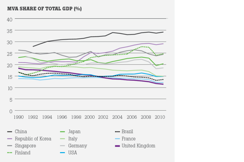 A business-as-usual approach will not deliver that outcome. Other economies are already ahead, and catching up will require an adaptive capacity that the UK has not yet demonstrated. Achieving this is essential, as the future competitiveness and health of UK manufacturing will affect many other parts of the economy through its numerous linkages.