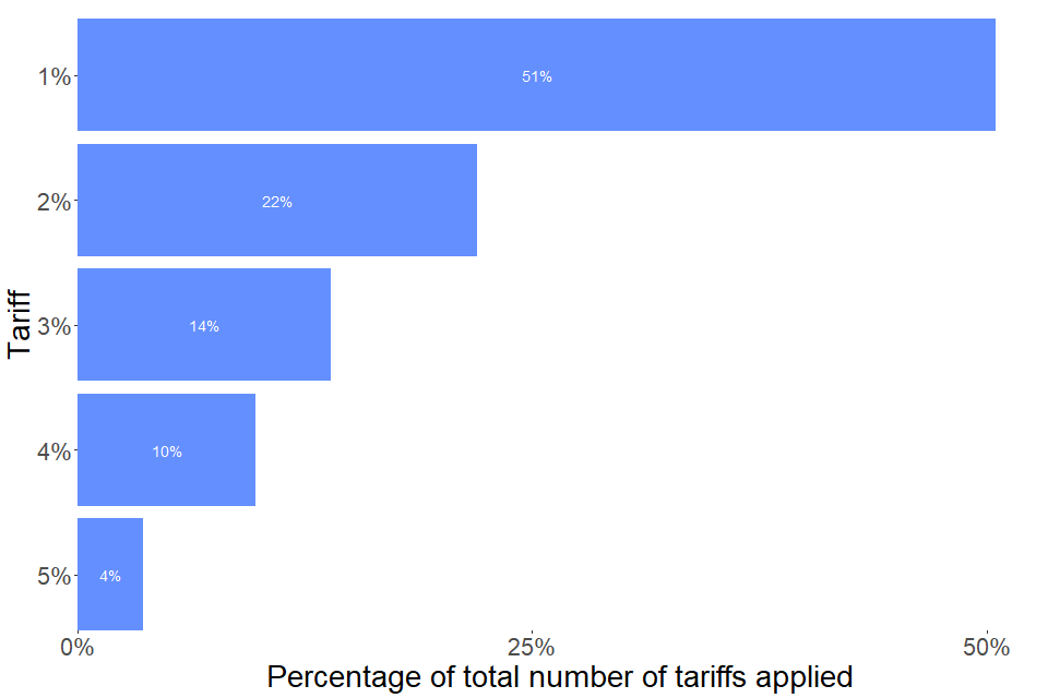 | Tariff | Number applied | Percentage of total number of tariffs applied |