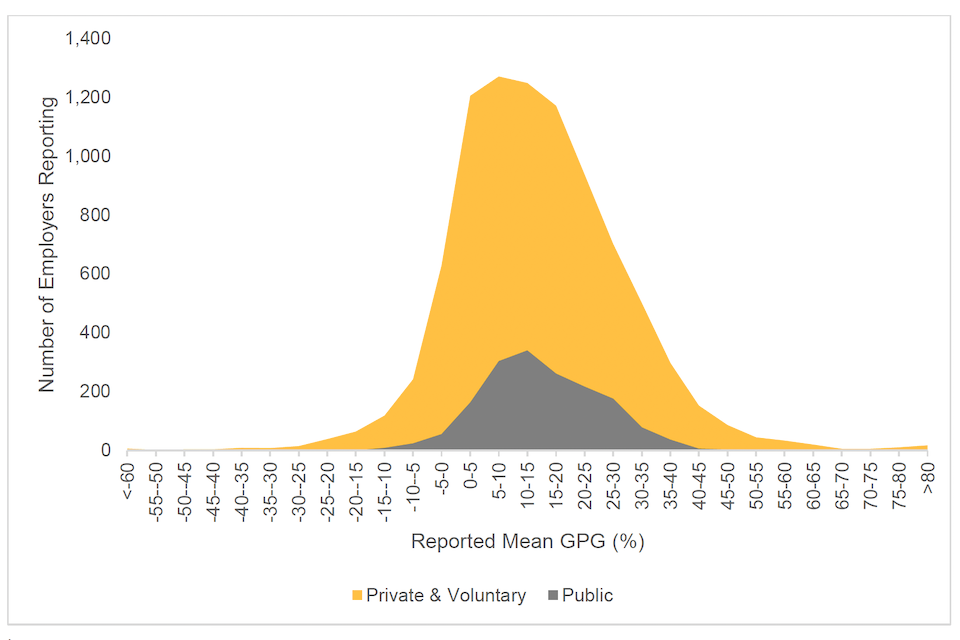 Figures 2 and 3 show the distribution of median and mean reported GPGs. A positive gap means that men are paid more than women on that measure.