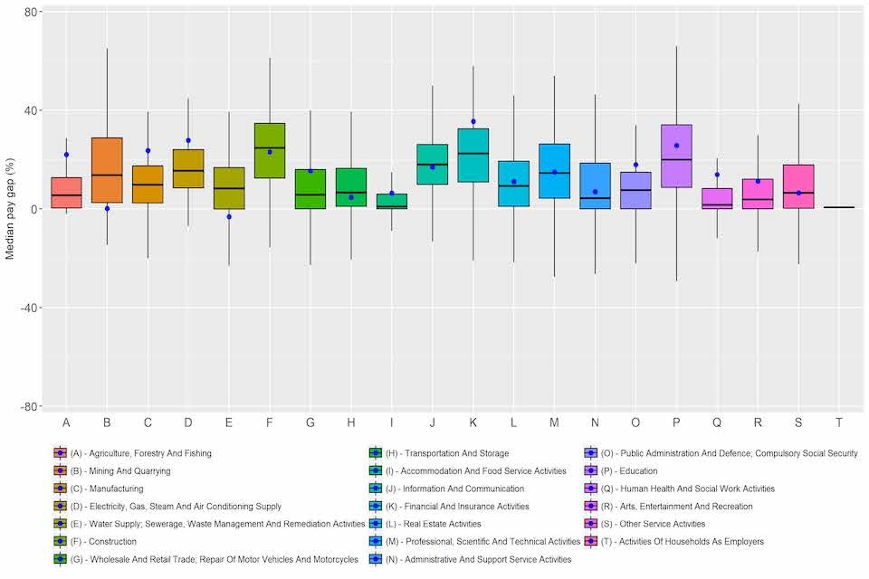 Figure 5: Range of reported median GPGs by industry, with cross-industry comparison