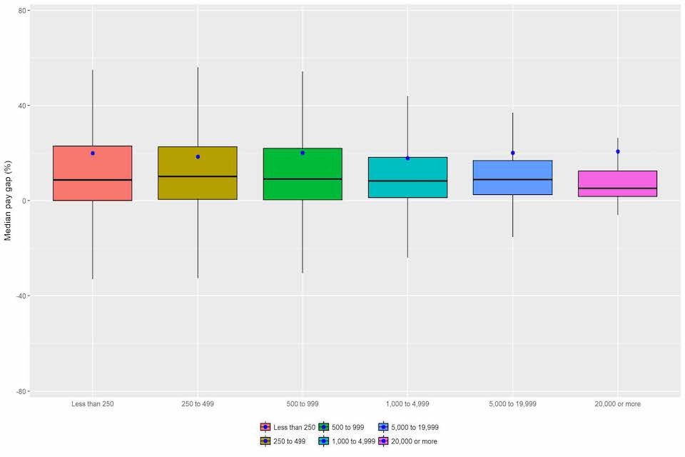 - 77% of reported median GPGs were positive, 14% were negative, and 9% of employers reported a median GPG of 0%
