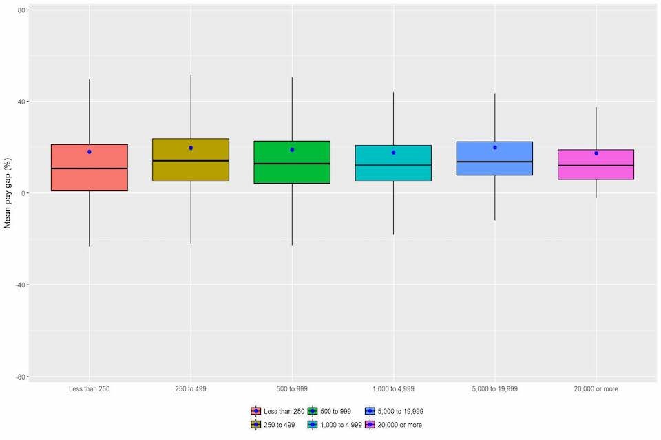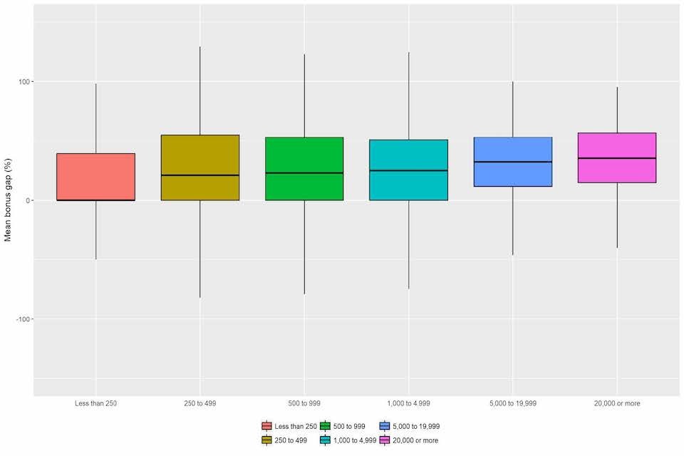 Figure 14: Range of reported mean bonus gaps by employer size band