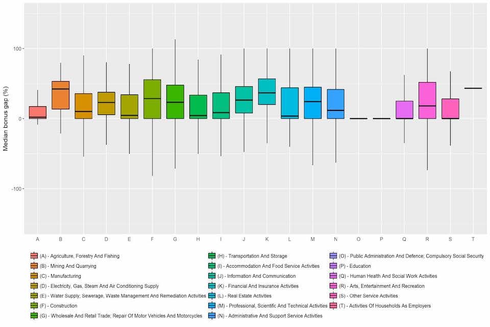 Figure 11: Range of reported median bonus gaps by industry
