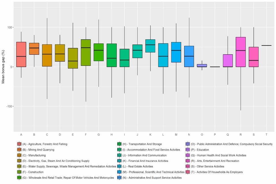 Figure 12: Range of reported mean bonus gaps by industry