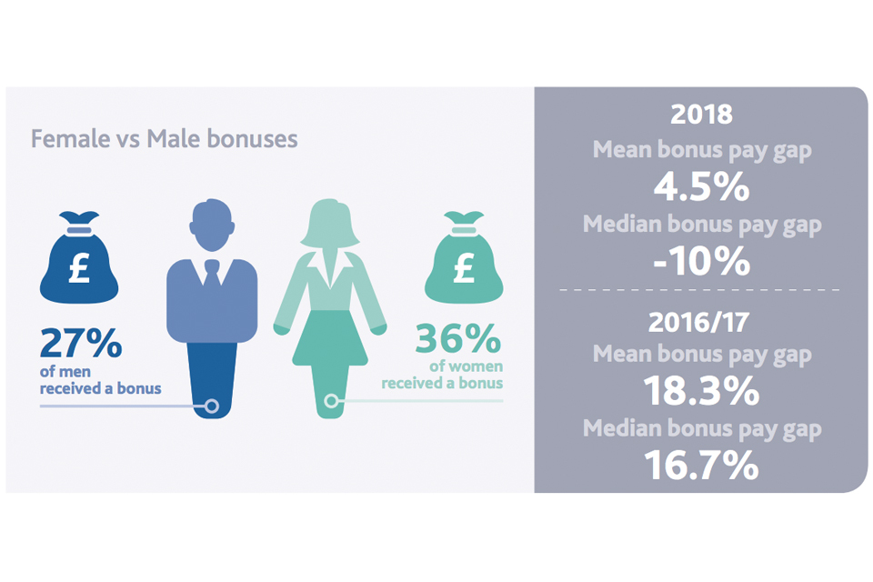 For 2018 the mean gender bonus gap (difference between men and women) is 4.5% and the median gender bonus gap is -10.0%. Overall, 36% of women received a bonus and 27% of men. This compares to a mean bonus gap of 18.3% and a median bonus gap of 16.7% in 16/17.