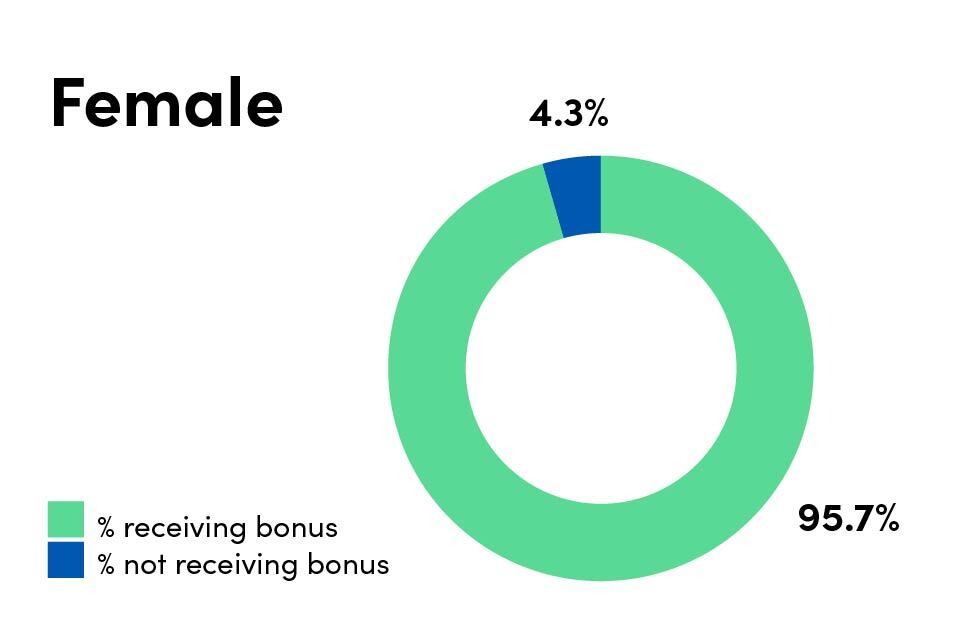 Notwithstanding the above there has been an overall increase of 5.5% of women in receipt of a bonus in 2024.
