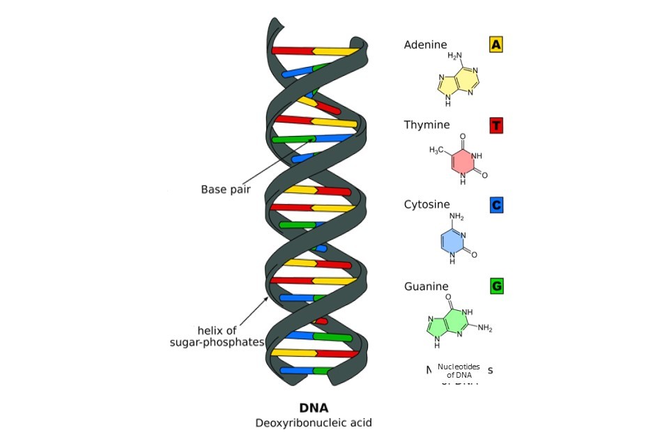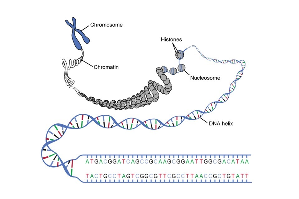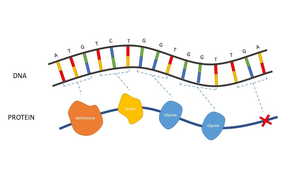 We have known since the 1950’s that our DNA sequence is a code, and this code contains the instruction for our cells on how to make proteins. Each gene corresponds to a different protein, and the proteins that are made give rise to an organism’s traits (such as eye colour, or flower size). DNA can influence traits through a variety of mechanisms; a single gene might determine a trait (like ABO blood group), several genes may work together synergistically (as seen with height and skin pigmentation), or some genes may override one another, masking the influence of others (like baldness and hair colour).
