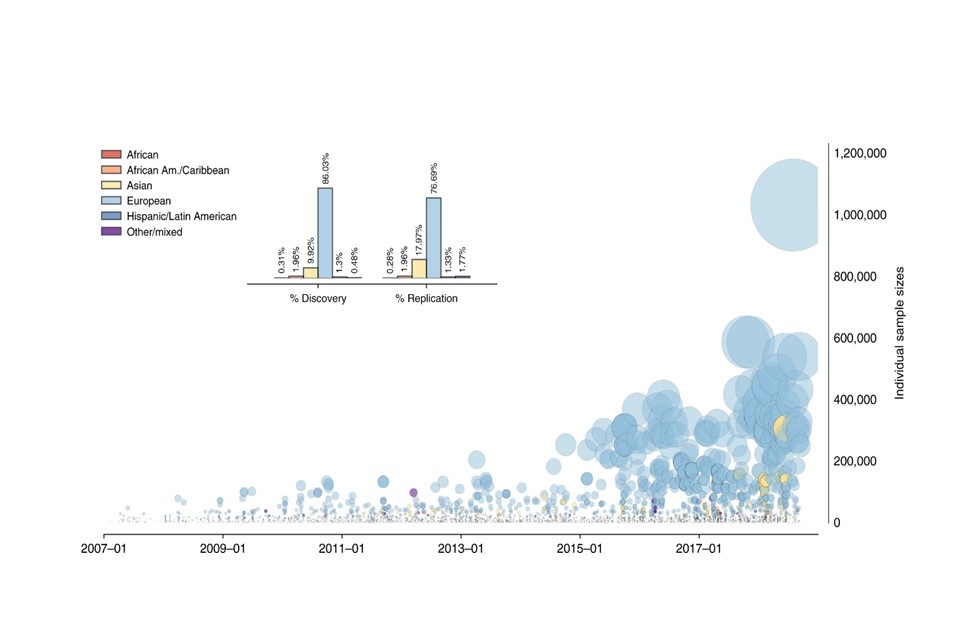 But as with any methodology, there are limitations. The key limitation of a GWAS is the diversity of the data it uses, which has not reflected the diversity of the general population. Research has shown that as much as 83 percent of GWAS have been conducted on cohorts entirely of European ancestry.[footnote 4] This is clearly problematic because it means that a GWAS may only be relevant for a select population. Developing and using predictive tests based on findings from population biased GWAS may therefore be discriminatory to those outside the GWAS population.