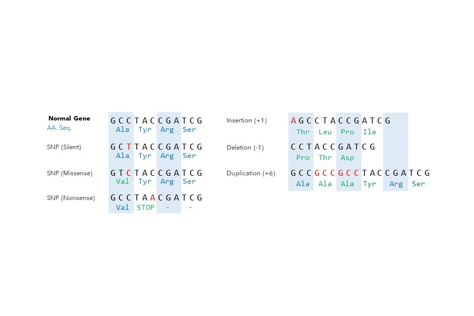 Most traits are influenced by many (likely thousands) of different segments of DNA working together. But mutations to our DNA can cause the proteins to change – this might then cause the trait to change. This is the primary driving force behind biological variability, diversity, and disease. Mutations can confer advantages or disadvantages to an individual, a neutral change, or they may have no effect at all. They can be passed down through families or occur from the point of conception. However, if they occur during adulthood, this generally limits their effects to the individual rather than their offspring.