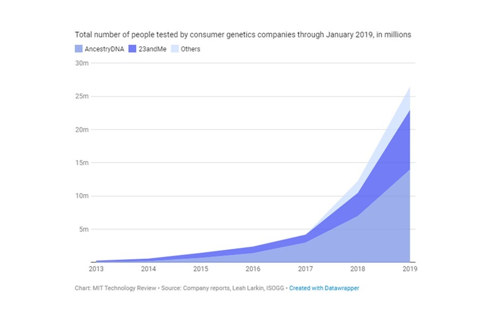Direct-to-consumer (DTC) genetic testing kits are marketed and sold directly to consumers without the involvement of a healthcare provider. A swab of saliva is sent off for analysis, providing the consumer with personalised health or ancestry analysis in just a few weeks. This market is growing rapidly, and tens of millions of consumers across the world have submitted DNA samples for commercial sequencing, to gain insights into their health, ancestry, and genetic predisposition to traits.