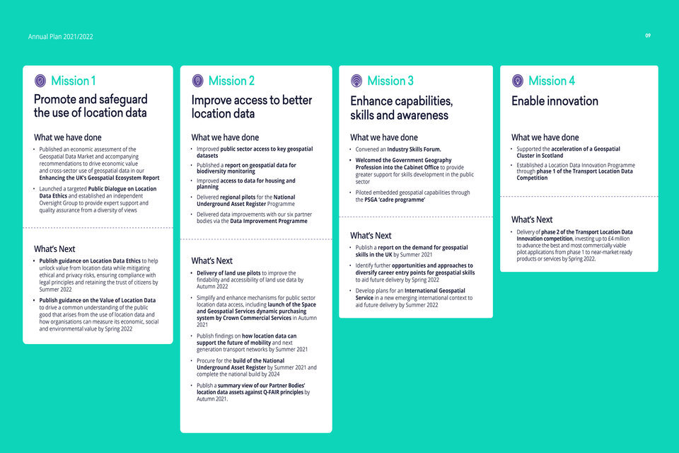 The UK Geospatial Strategy outlines a commitment to publish annual plans assessing progress and next steps towards implementation. This is the first of those plans.