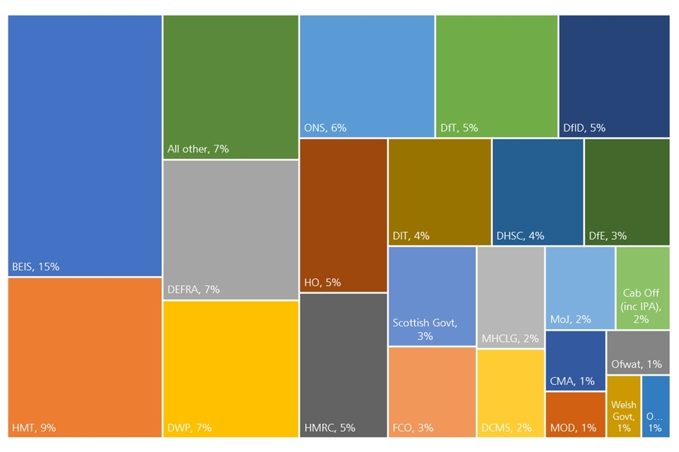 Graphic showing proportions of GES membership by department, with BEIS the largest at 15%