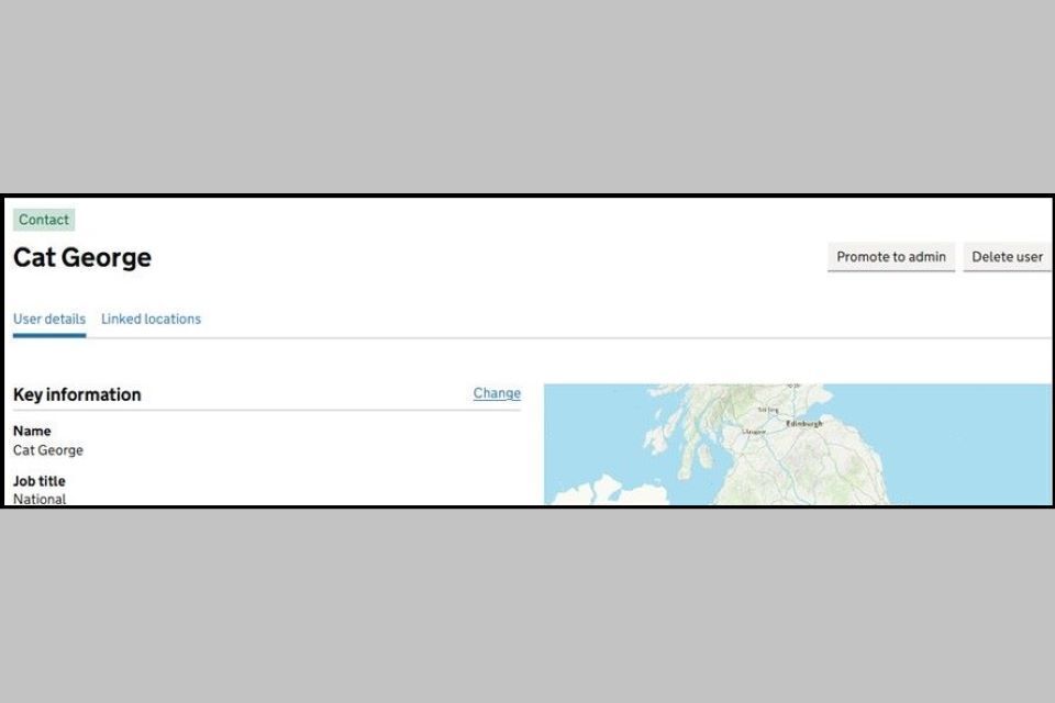 Image 5: User profile page for contact user with ‘Promote to admin’ option. Image courtesy of the Environment Agency.