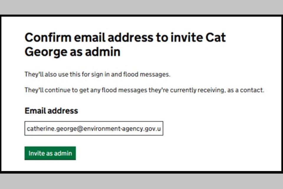 Image 6: Invite as admin page. Image courtesy of the Environment Agency.