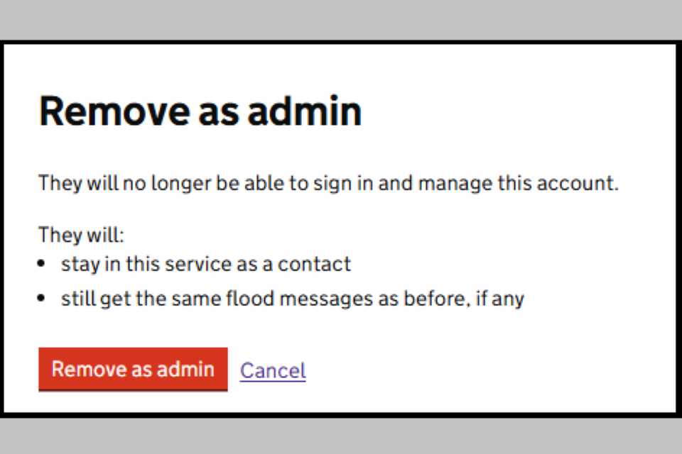 Image 9: Remove as admin page. Image courtesy of the Environment Agency