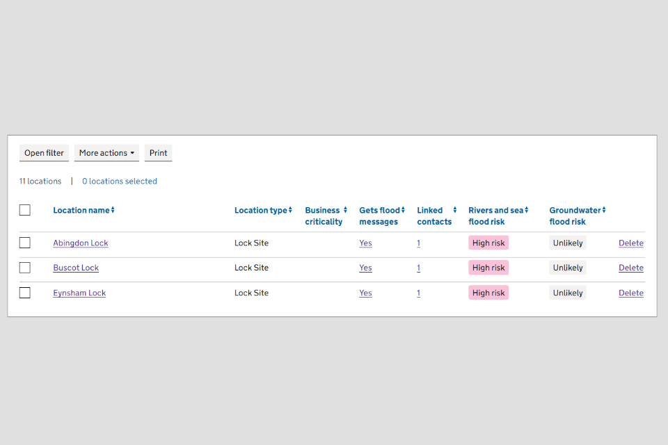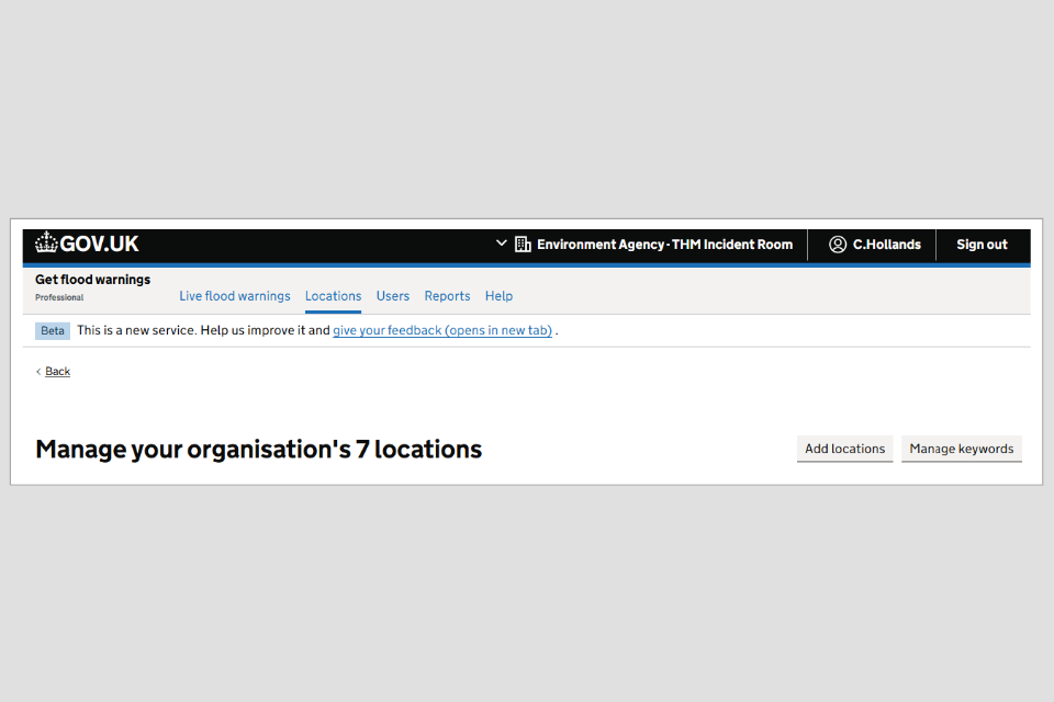 Administrators for an organisation can add locations of interest and then link contacts to these. This allows organisations to tailor which flood alerts and flood warnings each of their contacts receive.