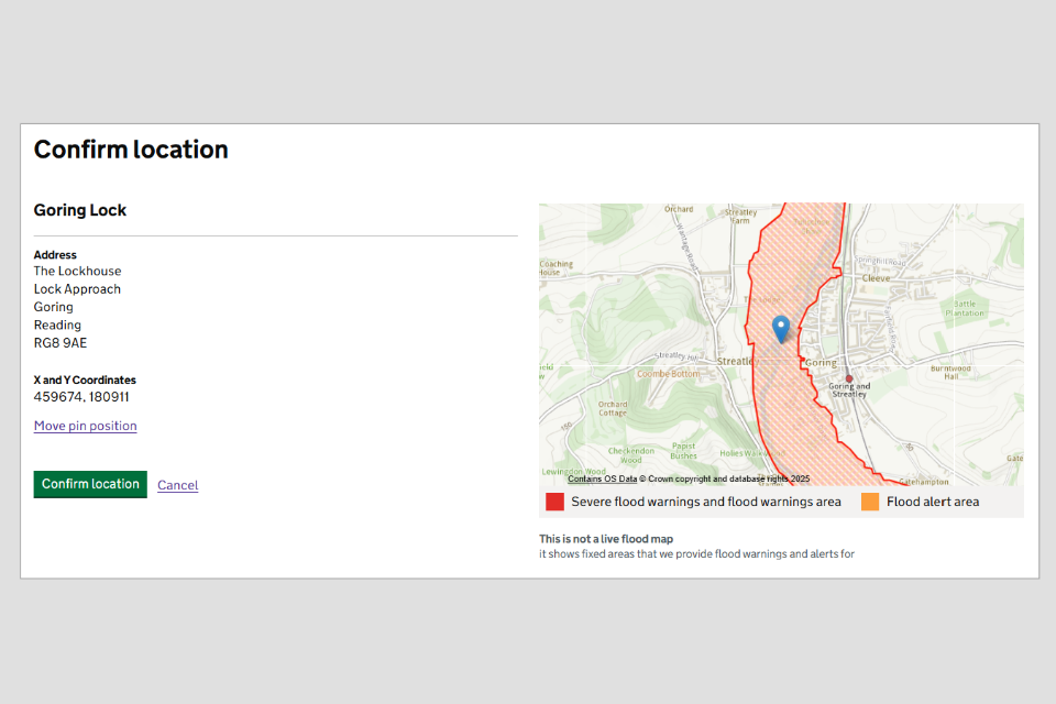 Image 3: Confirm locations page when adding new location. Image courtesy of the Environment Agency.