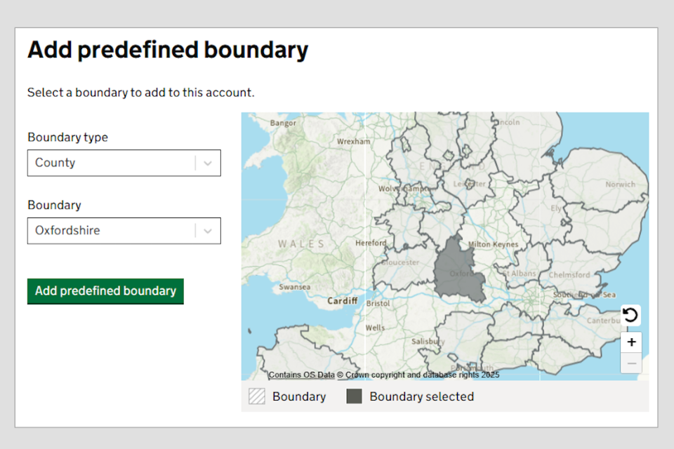 Image 5: Add predefined boundary page. Image courtesy of the Environment Agency.