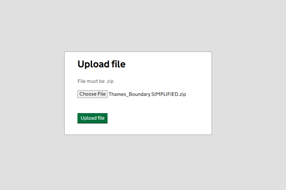 Image 7: Upload zip file page whilst adding shapefile. Image courtesy of the Environment Agency.