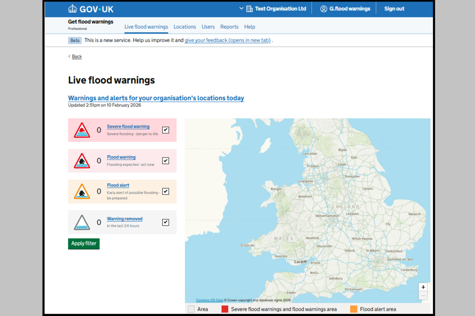Check for live flood warnings: guidance for professional users of the get flood warnings service