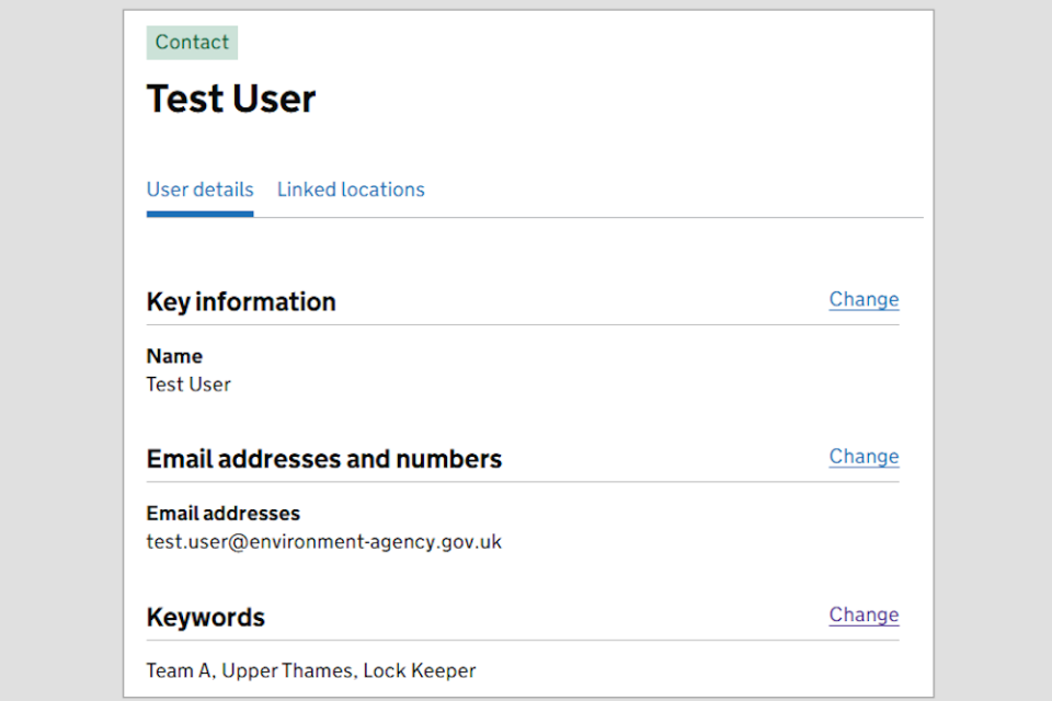 Image 2: User details tab with options to change user details. Image courtesy of the Environment Agency.