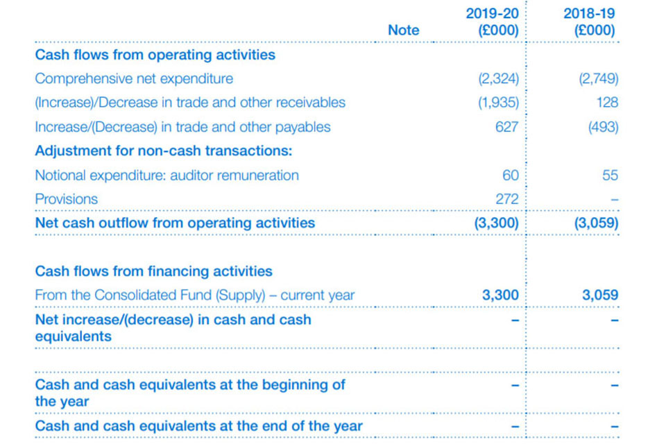 Statement of cash flows for the year ended 31 March 2020