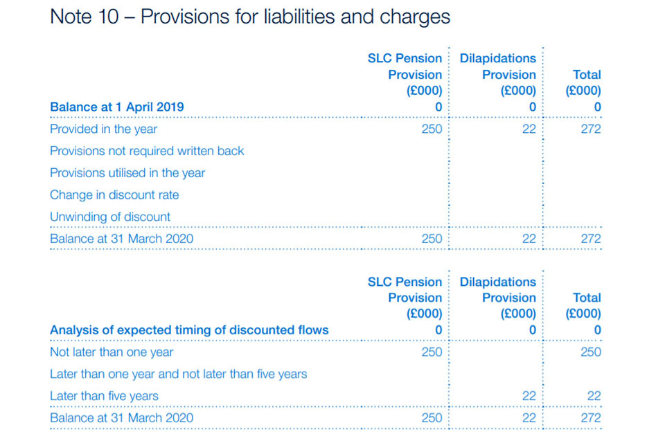 There is a provision of £250k for a potential pension liability for a small group of transferees into the Agency on 1st April 2019. This group is currently considering whether to transfer their past service from their previous pension provider into the Civil Service pension schemes, the financial impact of which is currently being considered by the Government Actuary’s Department (GAD).