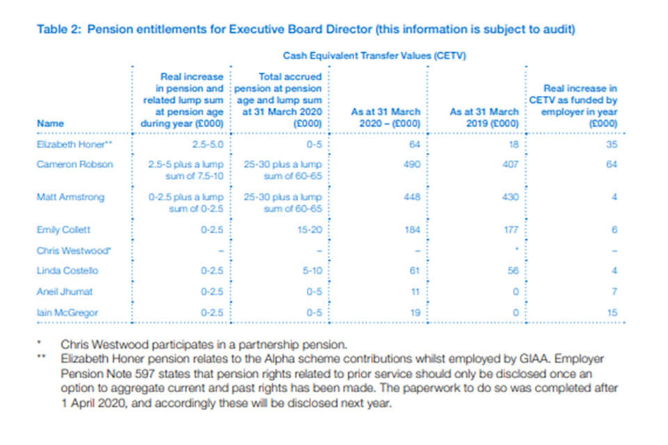 Pension and superannuation costs Pension benefits are provided through Civil Service pension arrangements as detailed on page 61 in the Remuneration Report GIAA recognises the expected cost of future pension liabilities in a systematic and rational basis over the period during which it benefits from employees’ service by payment to Civil Service pension schemes of amounts calculated on an accruing basis. Liability for payment of future benefits is a charge on the scheme.