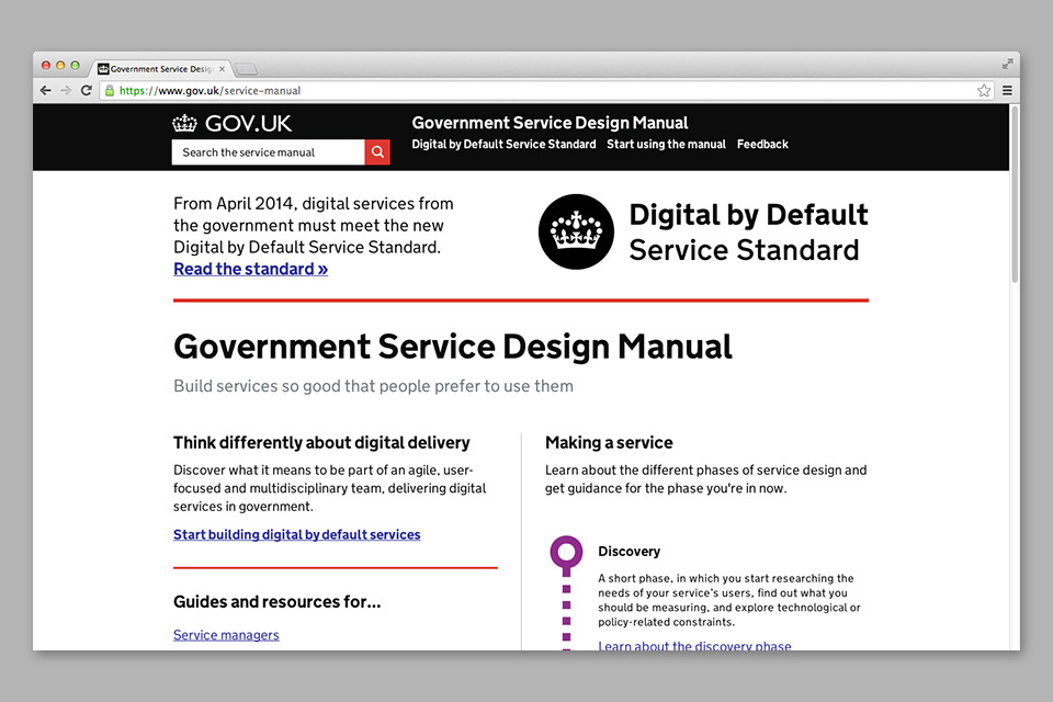 The Government Service Design Manual, published in mid-April, aims to help departments achieve the Digital by Default Service Standard. It got a positive reception, attracting attention internationally from both public and private sector organisations. Work continues on iterating and improving it in response to user feedback.