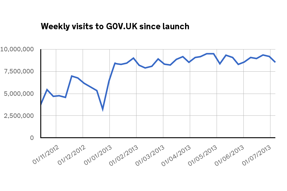 The Government Digital Strategy aims to improve services for people and save money at the same time. This quarter we announced that during 2012/13 we’d already saved about £500 million from IT spend controls and moving government services and transactions onto digital platforms. Of that, £42 million was saved by replacing Directgov and BusinessLink with GOV.UK.