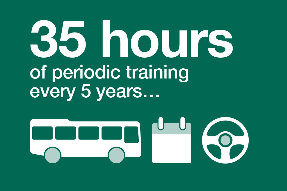 You must complete 35 hours of periodic training every 5 years towards your Driver Certificate of Professional Competence to drive a bus.