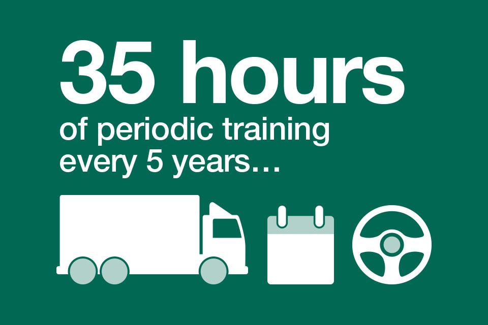 You must complete 35 hours of periodic training every 5 years towards your Driver Certificate of Professional Competence to drive a lorry. Further information about this is available online.
