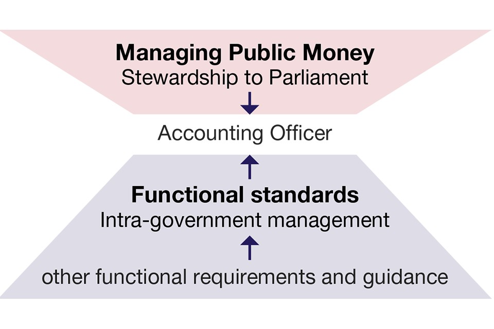 The accounting officer is a named role in functional standards. This ensures a clear line of sight between the practices defined in each standard, and the content of Managing Public Money and its complementary guidance, which together set the principles for the stewardship of public resources to Parliament. This relationship is illustrated below: