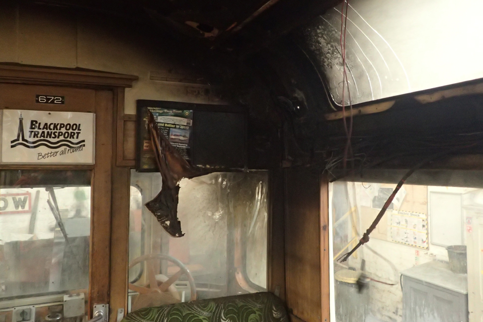 On Saturday 24 September 2016, heritage tramcar number 272 operated by Blackpool Transport Services (BTS) caught fire. This tramcar was part of a two car unit, known as a Progress Twin-car. In the UK, twin-car trams are currently only operated at Blackpool. The twin-car unit consisted of a trailer car (in this case vehicle T2) and a motor car (272). The motor car carries a pantograph to collect electric power from the 600 volt overhead supply. The twin-car unit has a driving cab at each end. This allows the unit to operate in either direction.
