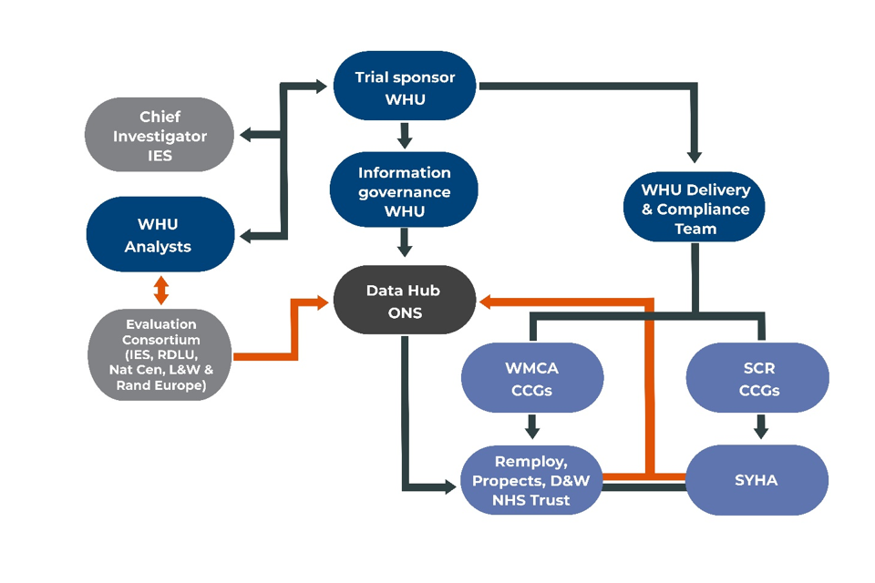 The evaluation of the Health-led Employment Trials was commissioned by the joint Work and Health Unit (WHU) which is sponsored by the Department for Work and Pensions and the Department of Health and Social Care. Throughout the design of the trials and evaluation methodology several colleagues within this directorate have made significant contributions. The authors are especially grateful to David Johnson, Huw Meredith, Chris Gunning, Anna Silk, Laura Mitzel, Tracey Gent, Nisha Patel and Karen Ruby. We are indebted to Hayley Moore-Purvis who had a critical role in the design and set-up of the information governance of the trials, ensuring its data management practices were effective, and robust.