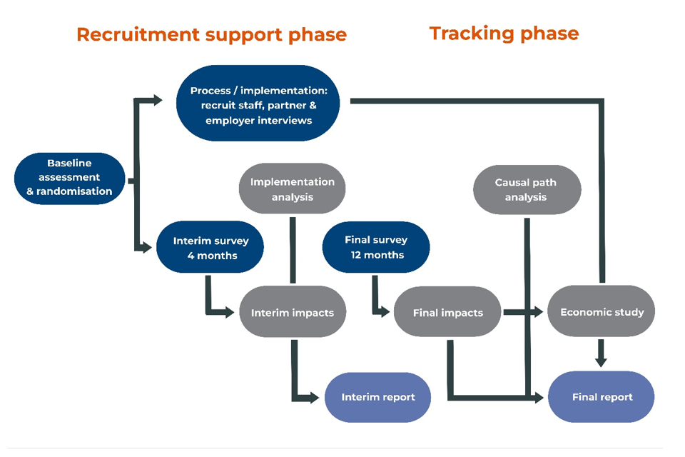 Lastly, the authors would like to thank colleagues within the wider research teams in the evaluation consortium. Stephen Bevan is the Chief Investigator has provided invaluable subject matter expertise to the evaluation. Emma Disley from RAND Europe made a substantial contribution in guiding the ethics processes and supporting the trials through Health Research Authority (HRA) approval. Within the Institute for Employment Studies (IES) we are especially grateful to Sara Butcher and Jade Talbot for their administrative support, and Rebecca Duffy for proofreading and formatting the reports. From the research team we are sincerely grateful to Jonathan Buzzeo, Ceri Williams, Georgie Akehurst, Kate Alexander, Rachel Cetera, Sally Wilson, Zofia Bajorak, Billy Campbell, and Rahul Shakala for their help with interviews and analysis. We are indebted to the team at Qa Research, and particularly Helen Hardcastle and Patrick Gower who supported us to recruit non-trial employers to understand their recruitment practices in the pandemic.