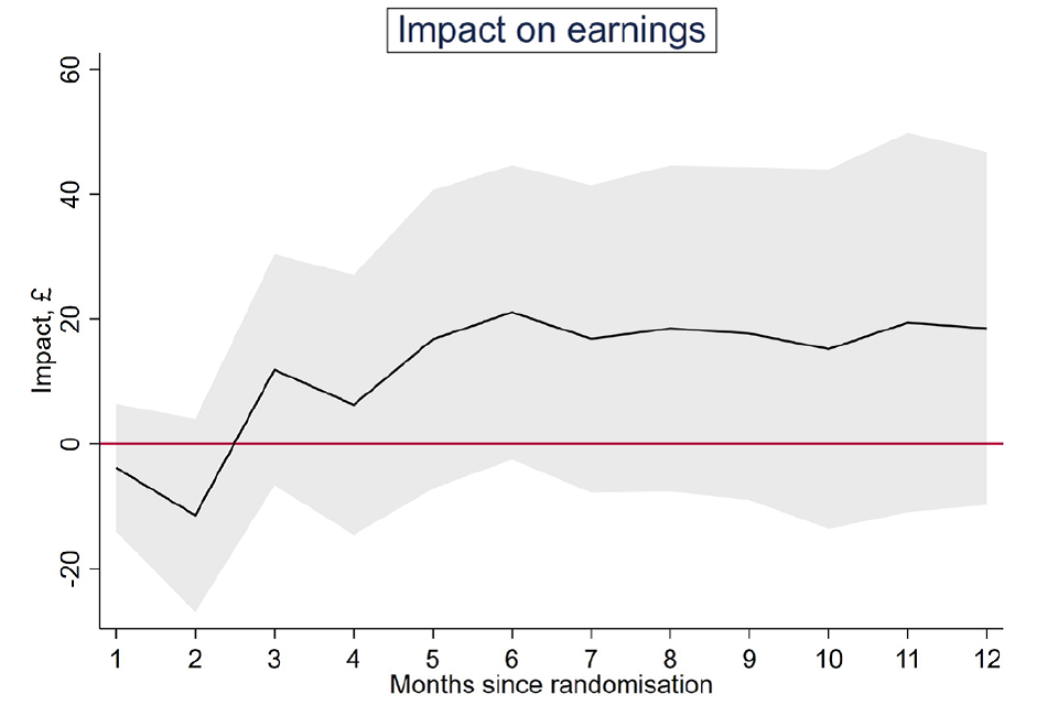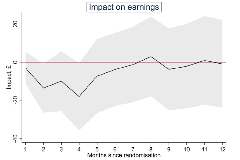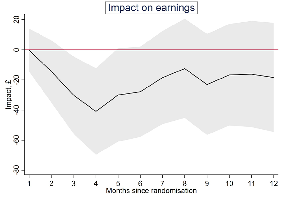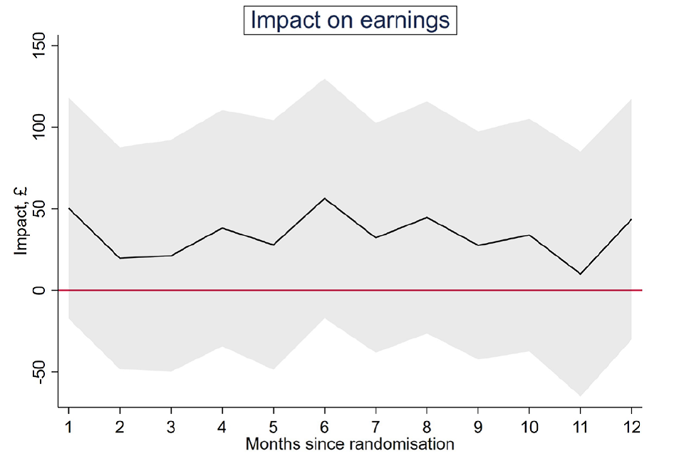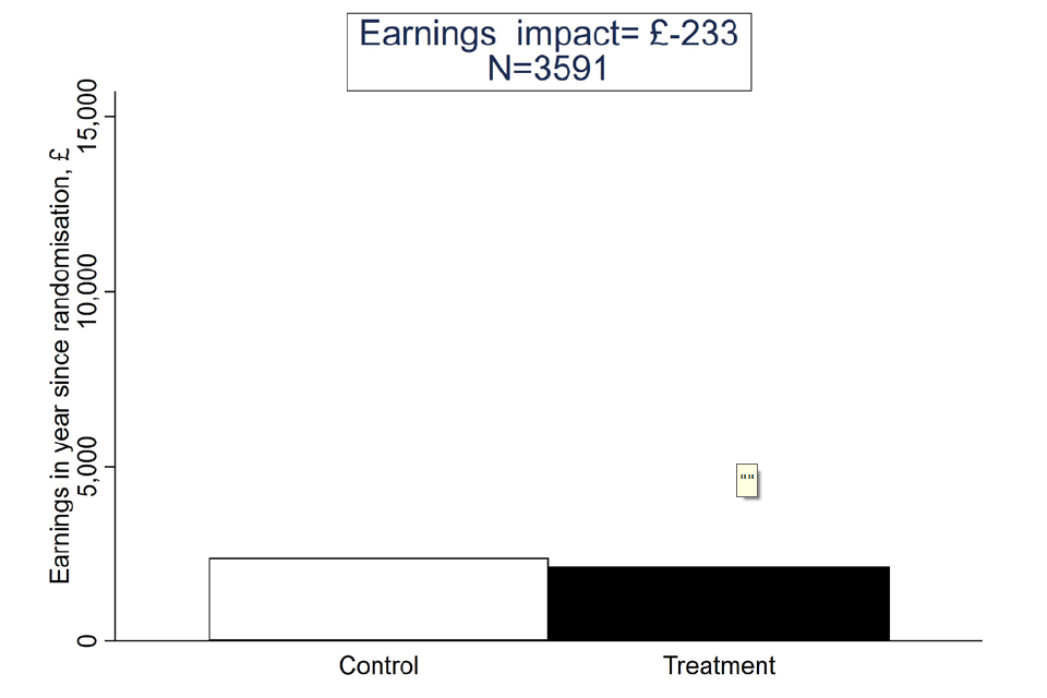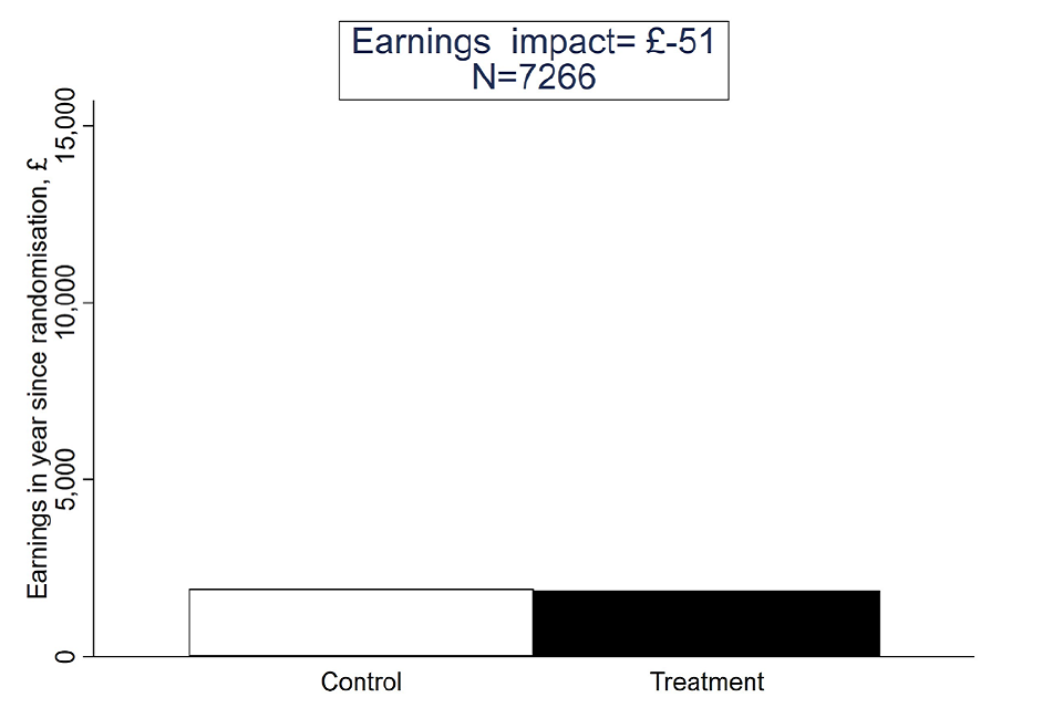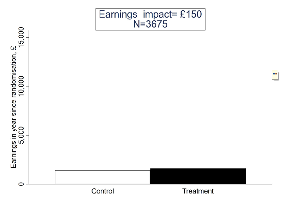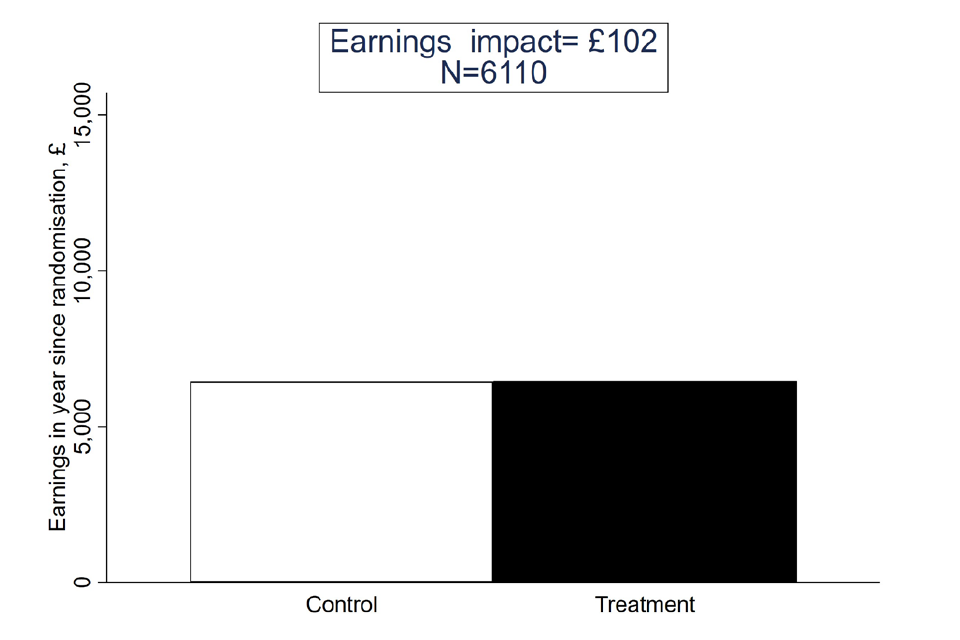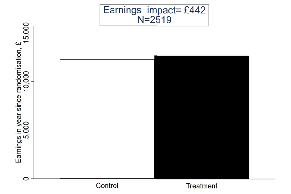 - earnings – total earnings in the 12 months following randomisation (based on HMRC PAYE RTI data)