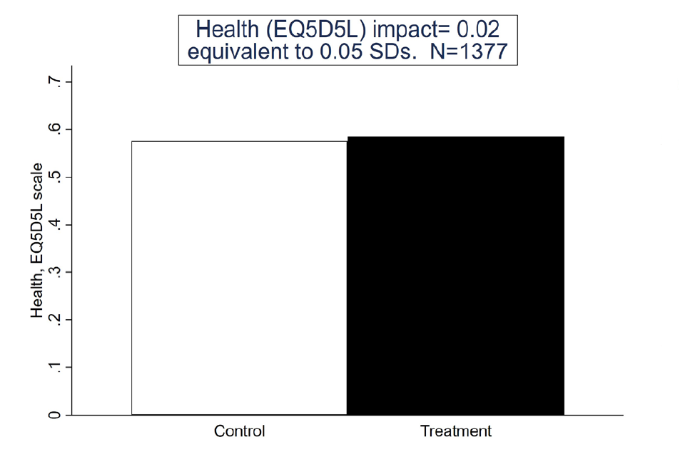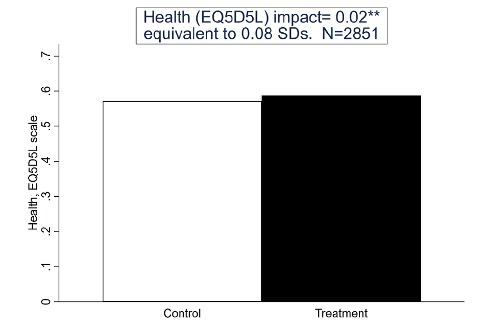 - in SCR[footnote 2] as a whole (All SCR), regardless of employment status at the time of randomisation, there was no effect on employment or earnings for the treatment group. There were small positive impacts on health and wellbeing that were significant at the 99% confidence level.