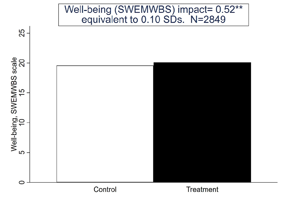 - wellbeing – as measured by the SWEMWBS instrument as part of the 12-month survey