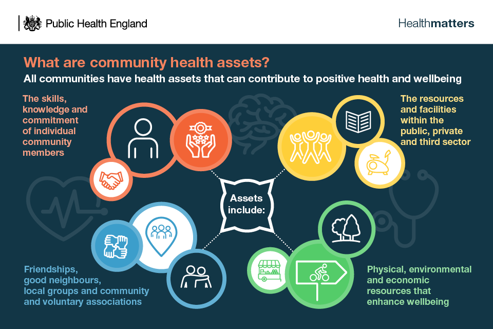 As well as having health needs, all communities have health assets that can contribute to the positive health and wellbeing of its members, including: