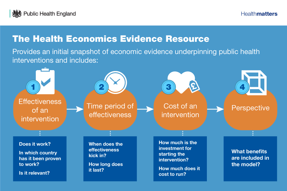 In recent years, there have been developments in the economic evidence related to public health, and there are a growing number of tools to translate this evidence into insight that can be applied for local systems and to inform national policy. PHE and the National Institute for Health and Care Excellence (NICE) have published a wide range of such tools and summaries of the available evidence.
