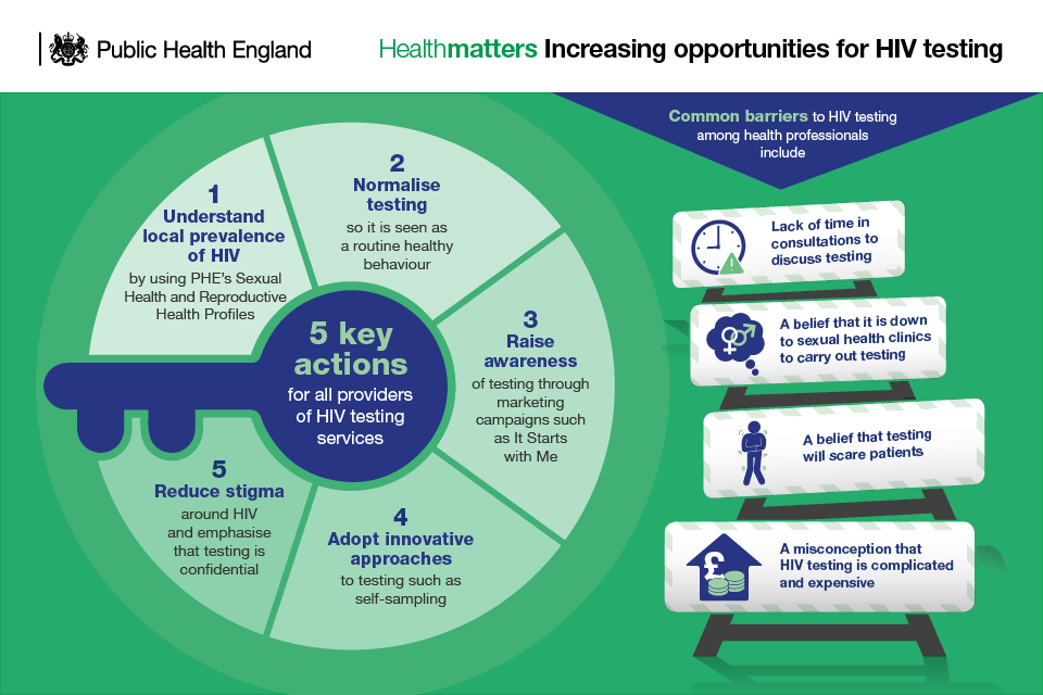 - advertising HIV testing in settings that offer it and making people aware that healthcare professionals welcome the opportunity to discuss HIV testing