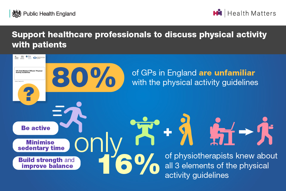As discussed above, healthcare professionals play a unique role in supporting people living with, or at risk of developing, long-term health conditions to get more physically active.