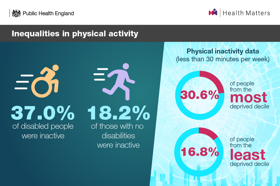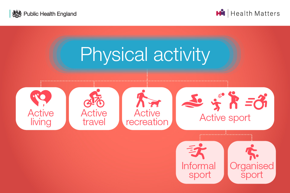 The government’s prevention green paper highlights that becoming more active is good for our mental and physical health, and reduces our risk of developing a number of health conditions. It also sets out the ambition of getting everybody active in the 2020s, including those of us who are already living with a health condition.