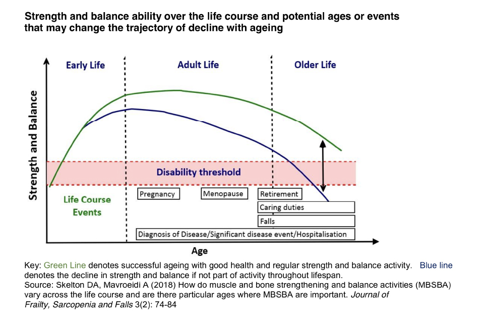 Therefore, muscle and bone strengthening and balance activities (MBSBA) are important across the lifecourse for different reasons: