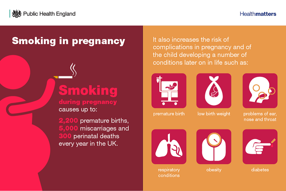 Encouraging women to stop smoking before having a baby benefits both mother and child, and may also help them stop smoking for good. Smoking in pregnancy is associated with poor foetal growth and low birthweight, and with obesity in childhood.